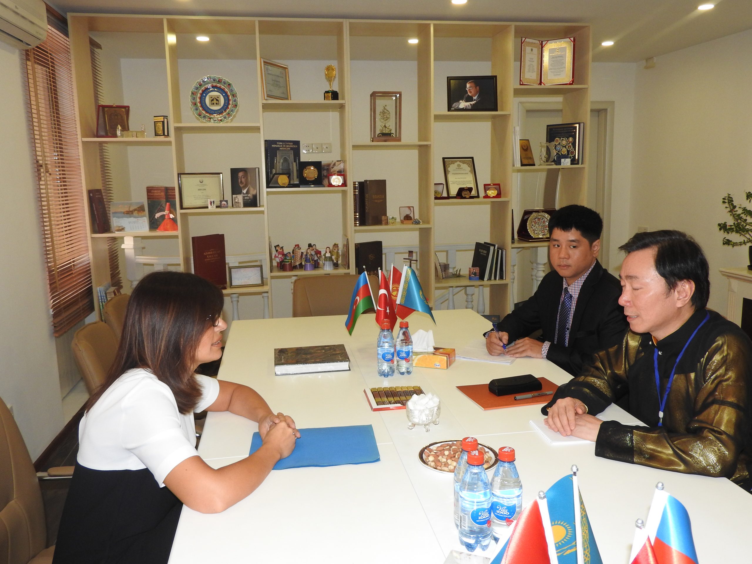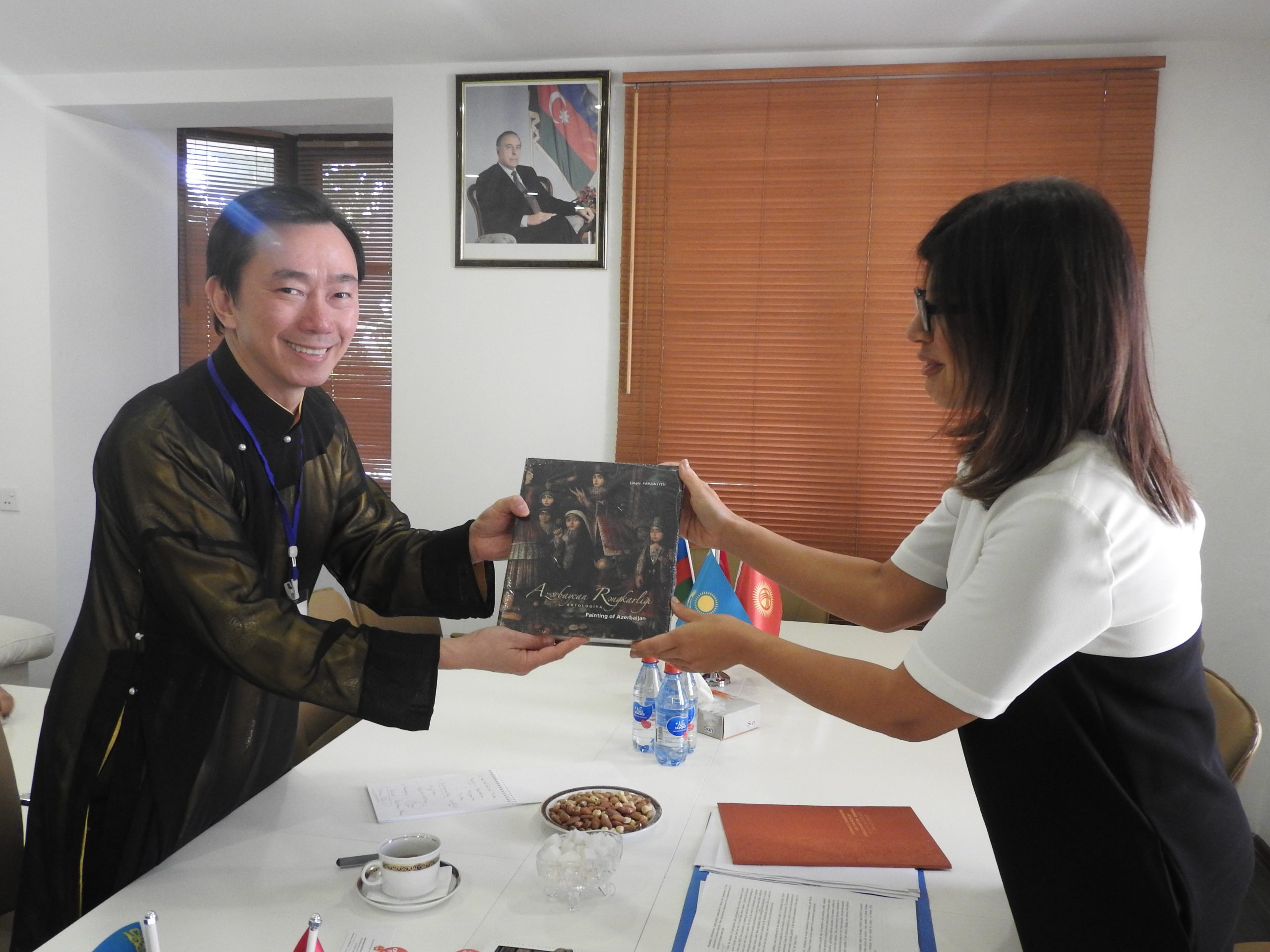 Beşinci Bakı Beynəlxalq Humanitar Forumunda iştirak etmək üçün ölkəmizdə səfərdə olan Vyetnamın Xarici İşlər Nazirliyinin mədəniyyət diplomatiyası və UNESCO-nun işləri üzrə idarəsinin baş direktoru Fam San Çayın rəhbərlik etdiyi nümayəndə heyəti Türk Mədəniyyəti və İrsi Fondunun prezidenti Günay Əfəndiyeva ilə görüşüb.