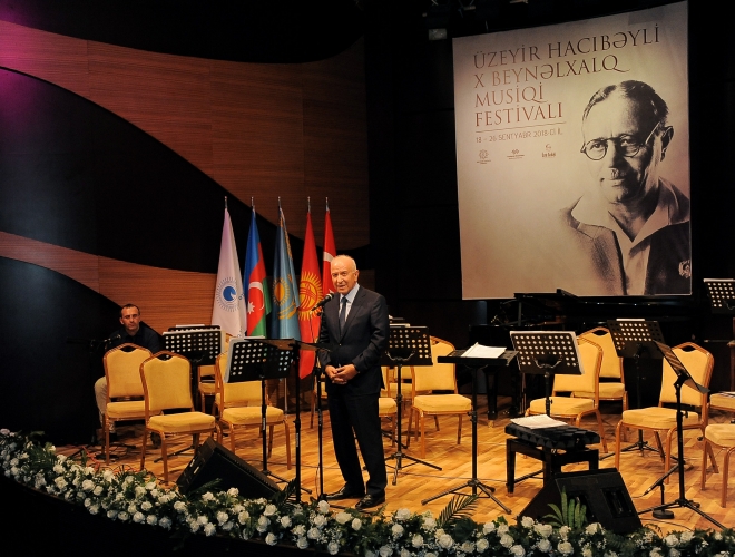 Ölkəmizdə akkreditə olunmuş diplomatik korpusun nümayəndələrinin, beynəlxalq təşkilatların təmsilçilərinin, tanınmış elm və mədəniyyət xadimlərinin, ictimaiyyət nümayəndələrinin, musiqisevərlərin qatıldığı təqdimat mərasimi “Üzeyir Hacıbəyli X Beynəlxalq Musiqi Festivalı” çərçivəsində təşkil edilib. Tədbirdə çıxış edən Beynəlxalq Türk Mədəniyyəti və İrsi Fondunun prezidenti Günay Əfəndiyeva rəhbərlik etdiyi qurumun gördüyü işlərdən danışıb. Bildirib ki, Beynəlxalq Türk Mədəniyyəti və İrsi Fondu Azərbaycan, Qazaxıstan, Qırğızıstan və Türkiyə dövlət başçılarının dəstəyi ilə təsis edilib. Qısa zamanda fəaliyyət göstərməsinə baxmayaraq, Fond türkdilli xalqlara məxsus mədəni, tarixi irsin mühafizəsi və təbliği yönündə fəaliyyət göstərməkdədir. Hazırda Fondun dəstəyi ilə türkdilli xalqların ortaq mirasının qorunması və təbliğ edilməsinə dair müxtəlif layihələr üzrə işlər aparılmaqdadır. Günay Əfəndiyeva, “Dədə Qorqud” kamera orkestrinin yaradılmasının belə layihələrdən biri olduğunu qeyd edib. Türk dünyasının ortaq yazılı abidəsi olan “Kitabi-Dədə Qorqud”un baş qəhrəmanının adını daşıyan “Dədə Qorqud” kamera orkestri özündə türk dünyası dövlətlərinin musiqiçilərini birləşdirir. Sevindirici haldır ki, bu ayın əvvəlində Qırğızıstanda keçirilən Türkdilli Dövlətlərin Əməkdaşlıq Şurasının VI Sammitində üzv ölkələrin dövlət başçılarının imzaladıqları Bəyannamədə bu təşəbbüs öz əksini tapıb. Orkestrın bədii rəhbəri və dirijoru Azərbaycanın Xalq artisti, professor Yalçın Adıgözəlovdur. Orkestr türk dünyasının zəngin mədəniyyət və incəsənətini, xalq yaradıcılığını, dahi bəstəkarlarının əsərlərini dünyada tanıtmaq məqsədilə fəaliyyət göstərir və bu istiqamətdə türkdilli xalqların musiqisini beynəlxalq platformada ifa edir. Günay Əfəndiyeva deyib ki, bu il Azərbaycan Xalq Cümhuriyyətinin və Qafqaz İslam Ordusunun yaradılmasının 100 illik yubileyləri böyük təntənə ilə qeyd olunur. Bir neçə gün əvvəl seyr etdiyimiz möhtəşəm parad bir daha iki türkdilli dövlət arasında mövcud dostluğun, qardaşlığın əbədiyaşarlığını sərgilədi. Qeyd edib ki, bu il həm də bütün türk dünyasının birliyinə dəstək verən, hər zaman onun inkişafına, güclənməsinə çalışan ulu öndər Heydər Əliyevin anadan olmasının 95 illiyi qeyd edilir. Eyni zamanda, Qırğızıstanın böyük yazıçısı Çingiz Aytmatovun 90 illiyi, Azərbaycanın görkəmli bəstəkarı Qara Qarayevin 100 illiyi silsilə tədbirlərlə qeyd edilməkdədir. Onların hər biri türk dünyasının nəhəng simalarıdır və biz hər zaman onların xatirəsini ehtiramla anırıq. Orkestrin Naxçıvan şəhərinin 2018-ci il üçün İslam mədəniyyətinin paytaxtı elan edilməsi ilə əlaqədar sentyabrın 22-də Naxçıvanda konsert proqramları ilə çıxış edəcəyini söyləyən Fondun prezidenti bu layihənin reallaşmasında əməyi olan hər kəsə minnətdarlığını bildirib. “Bu bir başlanğıcdır. “Dədə Qorqud” kamera orkestrinə Dədə Qorqud nüfuzunu, Dədə Qorqud yaşını, Dədə Qorqud ölməzliyini arzulayıram”, - deyə Günay Əfəndiyeva vurğulayıb. Mədəniyyət nazirinin birinci müavini Vaqif Əliyev dahi bəstəkar Üzeyir Hacıbəylinin adını daşıyan musiqi festivalının əhəmiyyətindən söz açıb. Bildirib ki, bu il artıq 10-cü dəfə təşkil olunan festivalın coğrafiyası daha da genişlənib. Festivala tanınmış musiqi kollektivləri qatılıb və onların rəngarəng musiqi proqramları hər kəsin zövqünü oxşamaqdadır. “Dədə Qorqud” kamera orkestrinin yaradılmasını olduqca əlamətdar hadisə kimi dəyərləndirən V.Əliyev söyləyib ki, məqsəd Azərbaycan, bütövlükdə türk dünyasının mədəniyyətini, incəsənətini təbliğ etməkdir. Beynəlxalq Türk Mədəniyyəti və İrsi Fondu qısa zamanda çox böyük işlər görüb. Fond daim axtarışdadır. V.Əliyev vurğulayıb ki, Prezident İlham Əliyev Türkdilli Dövlətlərin Əməkdaşlıq Şurasının (TDƏŞ) VI Zirvə görüşündə Beynəlxalq Türk Mədəniyyəti və İrsi Fondunun türkdilli dövlətlərin mədəniyyətinin inkişafı və təbliğində istiqamətindəki fəaliyyətini yüksək qiymətləndirib.