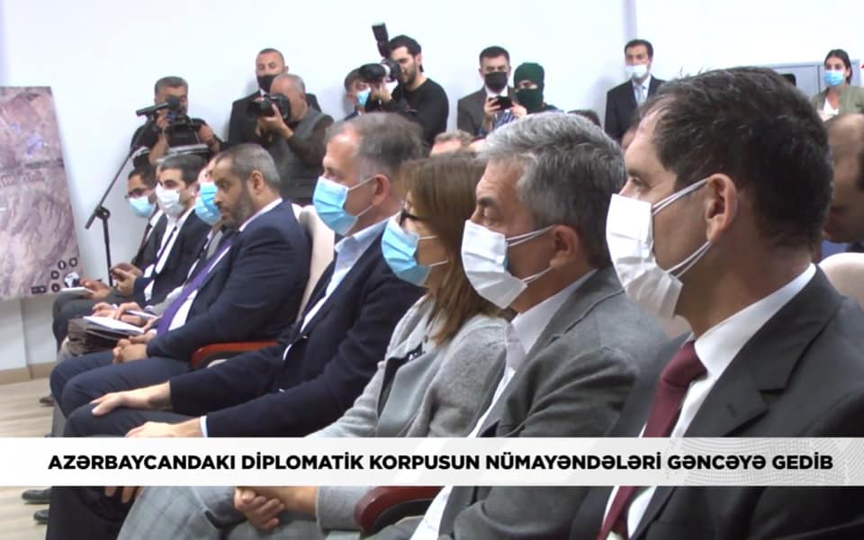 Səfərdə Azərbaycandakı diplomatik korpusun nümayəndə heyətlərinin rəhbərləri: səfirlər, beynəlxalq təşkilatların rəhbər və nümayəndələri, hərbi attaşelər iştirak edib. Onlar həlak olan dinc sakinlərin xatirəsinə ehtiram əlaməti olaraq, tamamilə dağılmış yaşayış binasının ətrafına gül düzüblər.