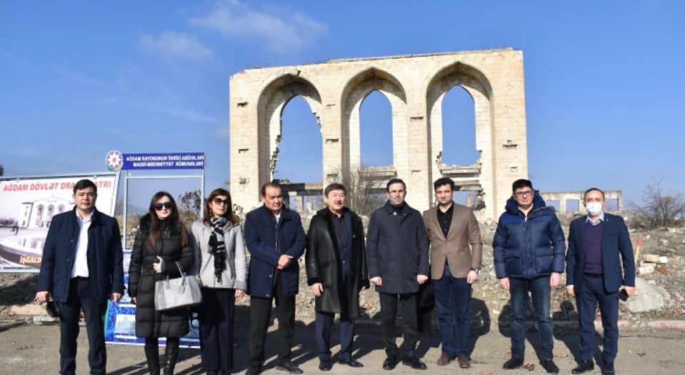 Beynəlxalq Türk Mədəniyyəti və İrsi Fondunun, Türk Şurasının, TÜRKSOY-un rəhbər və nümayəndə heyətlərinin Azərbaycanın azad olunmuş tarixi şəhərləri Ağdama və Füzuliyə səfəri baş tutub. Türk Şurasının baş katibi Bağdat Amreyev, TÜRKSOY-un baş katibi Düsen Kaseinov, Beynəlxalq Türk Mədəniyyəti və İrsi Fondunun prezidenti Günay Əfəndiyeva və nümayəndə heyəti Ağdama səfər çərçivəsində tarixi Ağdam Cümə Məscidini, Çörək Muzeyini, Ağdam Dram Teatrını, Qarabağ xanı Pənahəli xanın türbəsini, eləcə də Füzuliyə səfər çərçivəsində Jurnalislər evinin, Mədəniyyət mərkəzinin və tarixi məscidin qalıqlarını ziyarət edib, vandalizm aktlarının nəticələri ilə yerində tanış olublar. Qonaqlar ermənilərin yerlə-yeksan etdikləri Ağdam və Füzulinin küçələri ilə piyada gəzərək, mədəni və dini abidələrinin məhv edildiyinin canlı şahidi olublar. Beynəlxalq Türk Mədəniyyəti və İrsi Fondunun prezidenti Günay Əfəndiyeva səfər barədə təəssüratlarını jurnalistlərlə bölüşərək deyib: “Yenidən Ağdam və Füzuli şəhərlərinə gəldiyim üçün qürur hissi keçirirəm. Digər tərəfdən, buradakı abidələri belə vəziyyətdə görmək ürəyimizi ağrıdır. Minilliklərin sınağından keçən, tarixin yadigarları olan bu abidələr indi dağıdılmış vəziyyətdədir. Əslində, tariximizə, insanlığa yönəlmiş bir cinayətdir. Bu, məqsədyönlü cinayət əməlləridir. Dünya ictimaiyyəti tərəfindən mütləq pislənilməlidir. Əminəm ki, Azərbaycan Füzuli və Ağdamı, eyni zamanda Şuşanı, Zəngilanı, Kəlbəcəri, Qubadlını, Laçını və digər şəhərləri bərpa edəcək, burada yenidən muğam səsləri eşidiləcək, sənətkarlarımız öz əsərlərini yaradacaqlar. Beynəlxalq Türk Mədəniyyət və İrsi Fondu da bu istiqamətdə öz dəstəyini əsirgəməyəcək".
