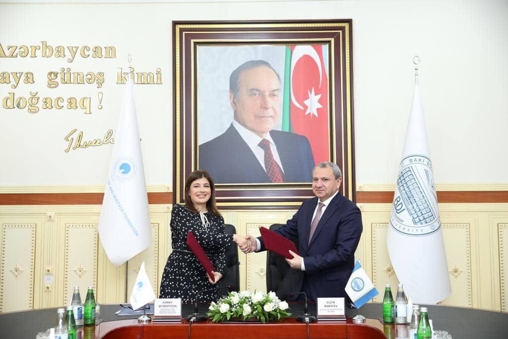 Daha sonra Beynəlxalq Türk Mədəniyyəti və İrsi Fondunun prezidenti Günay Əfəndiyeva və Bakı Dövlət Universitetinin rektoru Elçin Babayev Anlaşma Memorandumunu imzalayıblar.