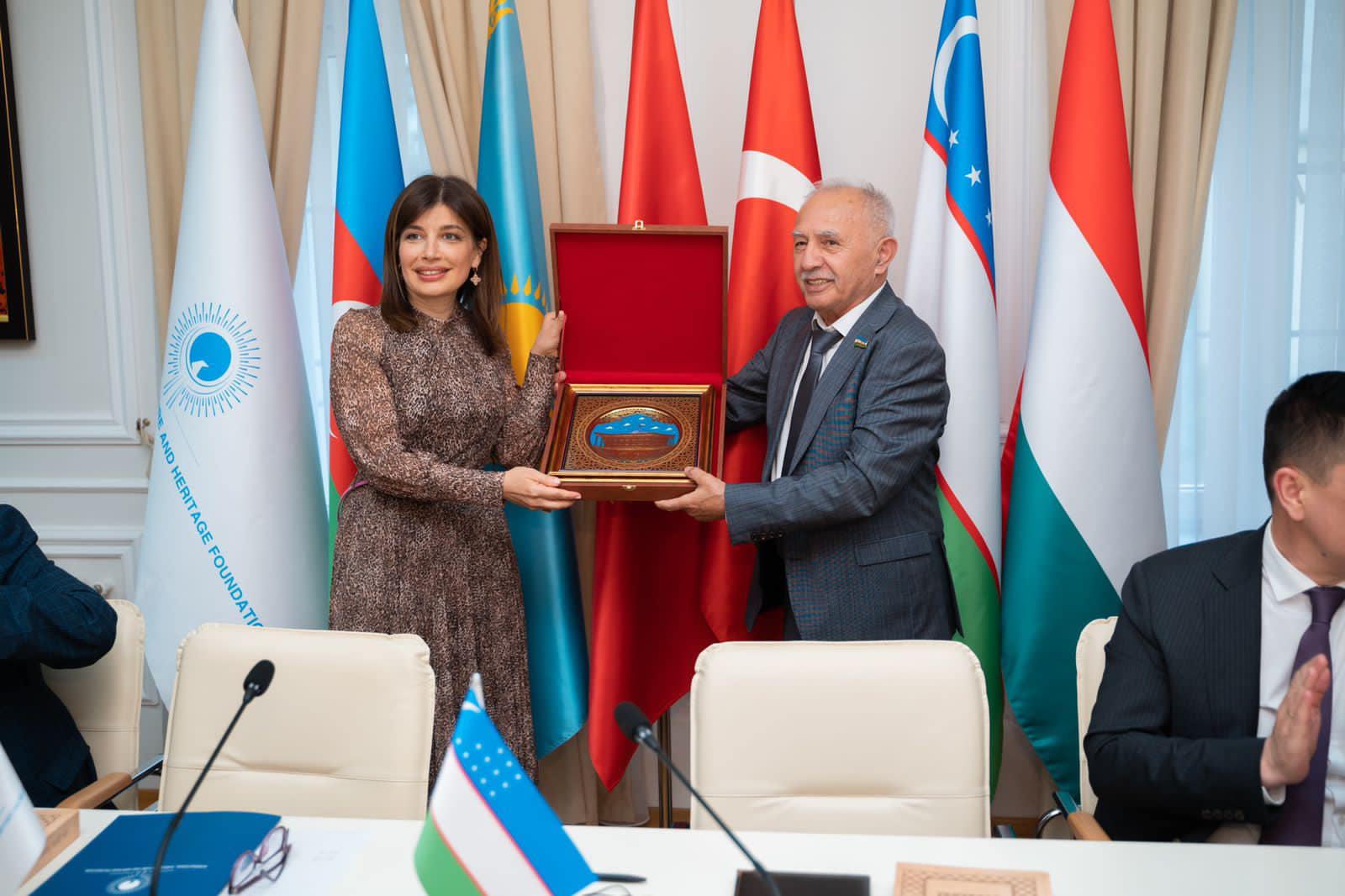 Tədbiri giriş sözü ilə açan Beynəlxalq Türk Mədəniyyəti və İrsi Fondunun prezidenti Günay Əfəndiyeva qonaqları salamlayaraq, təşkilatın struktur və məqsədlərindən, türk dünyasının zəngin mədəniyyətinin beynəlxalq aləmdə təbliği yönündə genişmiqyaslı fəaliyyətindən bəhs edib. Fondun prezidenti çıxışında Özbəkistanın qədim mədəniyyəti, tarixi, dünya elminə və mədəniyyətinə töhfələr bəxş etmiş dahi şəxsiyyətləri, memarlıq abidələri ilə türk dünyasında xüsusi yerə sahib olduğunu vurğulayıb. Özbəkistan ilə əməkdaşlığın Fond üçün önəmli olduğuna toxunan Günay Əfəndiyeva, münasibətlərin inkişafının türk xalqlarının bir-birinə yaxınlaşmasında önəmli rol oynayacağını bildirərək, Özbəkistanın qədim irsinin tanıdılması istiqamətində müxtəlif layihələrin həyata keçirilməsinin nəzərdə tutulduğunu vurğulayıb: “Bu layihələrdən biri təşkilat tərəfindən türk ədəbiyyatının böyük nümayəndələrindən Əlişir Nəvainin 580 illiyi münasibətilə çap olunan “Əlişir Nəvai Əsərləri” kitabıdır. Kitabı Əlişir Nəvainin şeirləri ilə yanaşı, özbək orta əsrlər incəsənətinin nümunələrindən olan miniatürlər bəzəyir. Şairin şah əsəri sayılan “Xəmsə”ni türk dilində yazması onun türk dünyasına olan sevgisinin, ehtiramının və bağlılığının təzahürüdür”.
