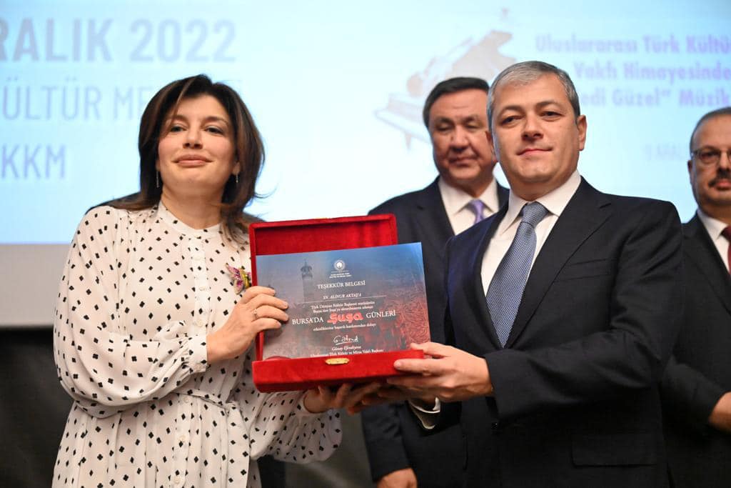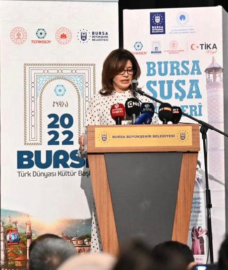 Beynəlxalq Türk Mədəniyyəti və İrsi Fondunun prezidenti Günay Əfəndiyeva Bursa Böyükşəhər Bələdiyyəsi tərəfindən cari il ərzində görülən işləri yüksək qiymətləndirərək, 2022-ci il Türk Dünyasının Mədəniyyət paytaxtı olan Bursanın növbəti ildə estafeti Azərbaycanın mədəniyyət beşiyi olan Şuşaya təhvil verəcəyini qeyd edib. Günay Əfəndiyeva təşkil olunacaq “Şuşa Günləri” proqramı barədə ətraflı danışaraq, Qarabağın Baş tacı olan Şuşanın zəngin tarixinin, mədəniyyətinin, incəsənətinin ətrinin bu günlər ərzində Bursada duyulacağını fəxrlə bildirib. Bununla da, Türk Dünyasının Mədəniyyət paytaxtı statusunun bir şəhərdən digərinə ötürülməsi kimi yeni ənənənin əsasının qoyulduğunu vurğulayıb.