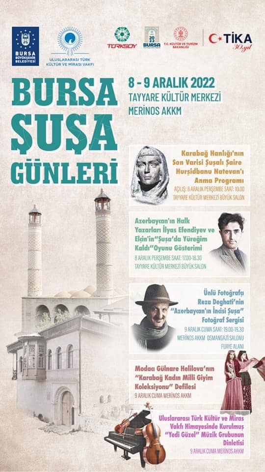 8 dekabr 2022-ci il tarixində Bursada Beynəlxalq Türk Mədəniyyəti və İrsi Fondu tərəfindən Bursa Böyükşəhər Bələdiyyəsi ilə əməkdaşlıq çərçivəsində təşkil olunan “Şuşa Günləri”nin açılş mərasimi keçirilib.