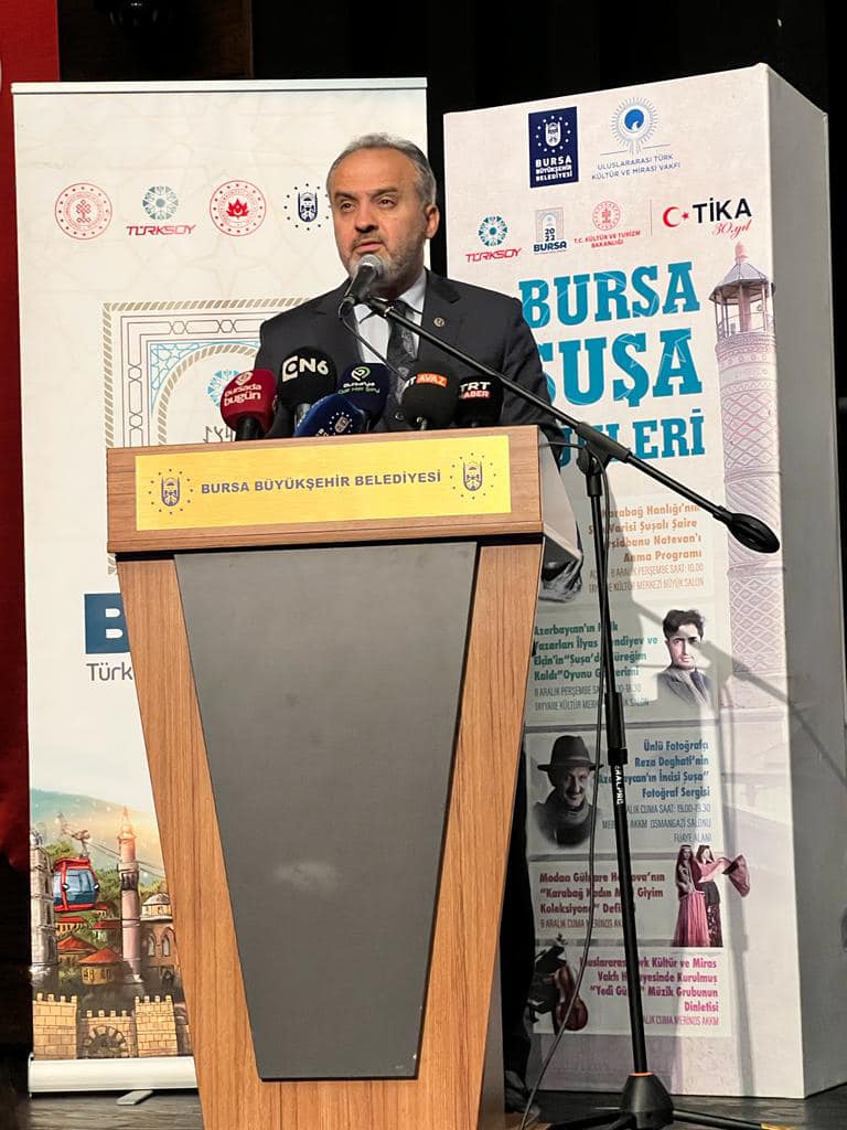 Mərasimdə Bursa Böyükşəhər Bələdiyyəsinin sədri Alinur Aktaş, Azərbaycan Respublikası Prezidentinin Şuşa rayonunda xüsusi nümayəndəsi Aydın Kərimov, Beynəlxalq Türk Mədəniyyəti və İrsi Fondunun prezidenti Günay Əfəndiyeva, Türk Dövlətləri Təşkilatının Baş katibi Kubanıçbek Omuraliyev, TÜRKSOY-un Baş katibi Sultan Rayev və Bursa Valisi Yakup Canpolat çıxış ediblər.