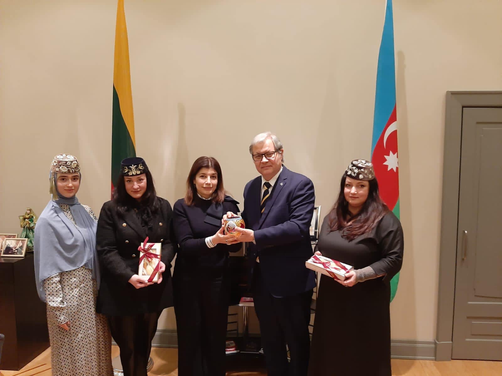 Beynəlxalq Türk Mədəniyyəti və İrsi Fondunun prezidenti Günay Əfəndiyeva Litvaya səfəri çərçivəsində Trakai şəhərini ziyarət edib və orada əsrlər boyu yaşayan Litva karaimlərinin nümayəndələri ilə görüşüb. Görüşdə karaimlərin tarixi və mədəni irsinin tanıdılması yönündə Fond tərəfindən Litva Respublikası ilə əməkdaşlıq çərçivəsində ölkə rəsmilərinin və icmanın təmsilçilərinin iştirakları ilə təşkil olunan silsilə tədbirlərdən bəhs edilib. Fondun prezidenti Günay Əfəndiyeva Litva karaimlərinin tanınmış nümayəndəsi, diplomat, tərcüməçi Halina Kobeckaiteyə türk xalqlarının bir-birinə daha da yaxınlaşmasında göstərdiyi xüsusi xidmətlərə görə təşkilatın təsis etdiyi “Dədə Qorqud” mükafatını təqdim edib. Eyni zamanda Günay Əfəndiyeva Azərbaycan Respublikasının Litva Respublikasındakı Səfirliyində tatar icmasının nümayəndələri ilə təşkil olunmuş görüşdə iştirak edib. Görüşdə Litva tatarlarının dili, dini, folkloru, adət-ənənələrinə dair geniş fikir mübadilələri aparılıb, milli musiqiləri, mahnıları, mətbəx nümunələri nümayiş etdirilib. Həmçinin, səfirlikdə çoxəsrlik türk xalqlarının milli-mənəvi dəyərlərini əks etdirən, qədim tarixə malik Novruz bayram süfrəsi açılıb, milli şirniyyatlar təqdim olunub. Fondun prezidenti Şuşa şəhərinin 2023-cü il Türk Dünyasının Mədəniyyət Paytaxtı elan olunmasını nəzərə alaraq, Azərbaycan Respublikasının Litva Respublikasındakı fövqəladə və səlahiyyətli səfiri Tamerlan Qarayevə Fondun Şuşanın simvollarını əks etdirən xatirə hədiyyəsini təqdim edib. Görüşlərdə Litva Respublikasının Azərbaycan Respublikasındakı fövqəladə və səlahiyyətli səfiri Egidius Navikas iştirak edib.