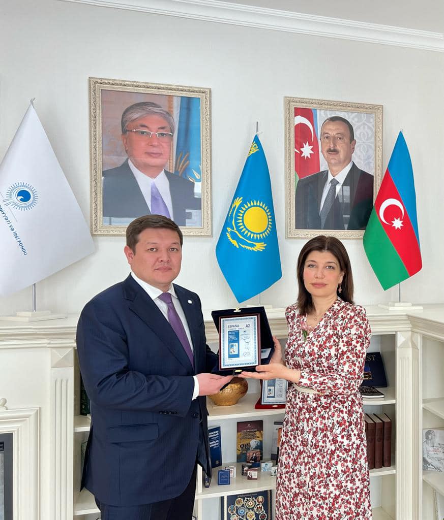 Beynəlxalq Türk Mədəniyyəti və İrsi Fondunun prezidenti Günay Əfəndiyeva “2023-cü il Şuşa - Türk Dünyasının Mədəniyyət Paytaxtı” İlinin rəsmi açılış mərasimi çərçivəsində təşkilatı ziyarət edən Qazaxıstan Respublikasının Mədəniyyət və İdman naziri Asxat Oralovla görüşüb. Görüşdə Şuşa şəhərinin 2023-cü ilin Türk Dünyasının Mədəniyyət Paytaxtı elan olunmasının bütün türk xalqları tərəfindən böyük qürur və fəxarət hissi ilə qarşılandığı bildirilib. Fond tərəfindən Türk Dünyasının şəhərlərində Şuşanın qədim tarixi irsinin, dəyərlərinin tanıdılması məqsədilə keçirilən tədbirlərin əhəmiyyəti vurğulanıb. Fondun Bursa və Daşkənddə təşkil etdiyi geniş miqyaslı “Şuşa Günləri” layihəsinin Qazaxıstanda keçirilməsi planlaşdırılıb. Görüşdə ümumtürk mədəni irsinin öyrənilməsi, qorunması və dünyada təbliği sahəsində nəzərdə tutulan birgə tədbirlər müzakirə olunub. Eyni zamanda Nazir Fondun Qazaxıstanla sıx əməkdaşlığını yüksək qiymətləndirərək, təşkilatın ölkənin mədəniyyətinin təbliği istiqamətindəki layihələrini dəstəkləməyə hər zaman hazır olduğunu bildirib. Qazaxıstanın Abay, Jambul Jabayev və digər görkəmli ədəbi simalarının yubileyləri çərçivəsində təşkilat tərəfindən aparılmış işlərdən bəhs olunub. Fond tərəfindən Abaya həsr edilmiş yeni kitabın yaxın zamanda işıq üzü görəcəyi diqqətə çatdırılıb. Görüş Fond ilə Qazaxıstanın qarşılıqlı əməkdaşlıq əlaqələrinin inkişafı, eləcə də gələcək ortaq layihələr istiqamətində fikir mübadiləsi ilə başa çatıb. [gallery ids="eyJ1cmwiOiJodHRwczpcL1wvaXRjaGYub3JnXC93cC1jb250ZW50XC91cGxvYWRzXC8yMDIzXC8wN1wvMzQ3MjU4NDU0XzE2MzYxOTM1MDAyMzU0M18xOTkzMTIxMzMwODY4MzcwNTk1X24tMS5qcGciLCJ0aXRsZSI6IjM0NzI1ODQ1NF8xNjM2MTkzNTAwMjM1NDNfMTk5MzEyMTMzMDg2ODM3MDU5NV9uICgxKSIsImNhcHRpb24iOiIiLCJhbHQiOiIiLCJkZXNjcmlwdGlvbiI6IiJ9,eyJ1cmwiOiJodHRwczpcL1wvaXRjaGYub3JnXC93cC1jb250ZW50XC91cGxvYWRzXC8yMDIzXC8wN1wvMzQ3MjMxOTY3XzI0OTc3MjgzNzcyNjYxNV82MjkzMDQ0MzM0Nzc0MzY4ODE2X24uanBnIiwidGl0bGUiOiIzNDcyMzE5NjdfMjQ5NzcyODM3NzI2NjE1XzYyOTMwNDQzMzQ3NzQzNjg4MTZfbiIsImNhcHRpb24iOiIiLCJhbHQiOiIiLCJkZXNjcmlwdGlvbiI6IiJ9"]