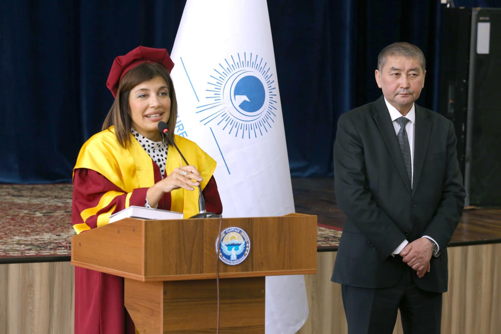 Qırğızıstan Milli Universitetinin rektoru Tolobek Abdıraxmanov Günay Əfəndiyevaya diplomu təqdim edərək, ona Türk Dünyasında inteqrasiya prosesinin inkişafına yönəlmiş geniş fəaliyyətlərinə görə Universitetin adından təşəkkürünü bildirib.