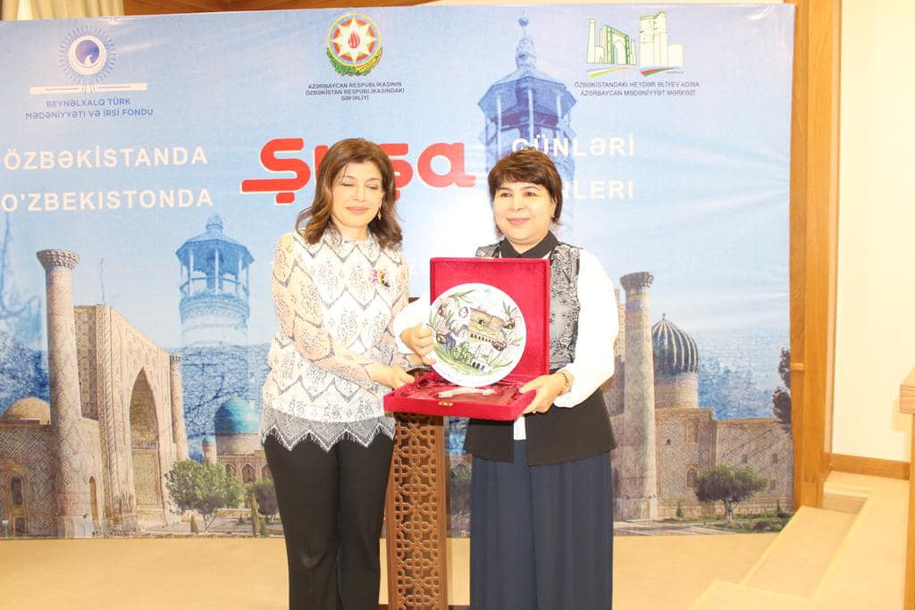 Sonra Beynəlxalq Türk Mədəniyyəti və İrsi Fondunun prezidenti Günay Əfəndiyeva tərəfindən Özbəkistanda “Şuşa günləri” münasibətilə rəsmi qonaqlara və təşkilatçılara xatirə hədiyyələri təqdim edilib.