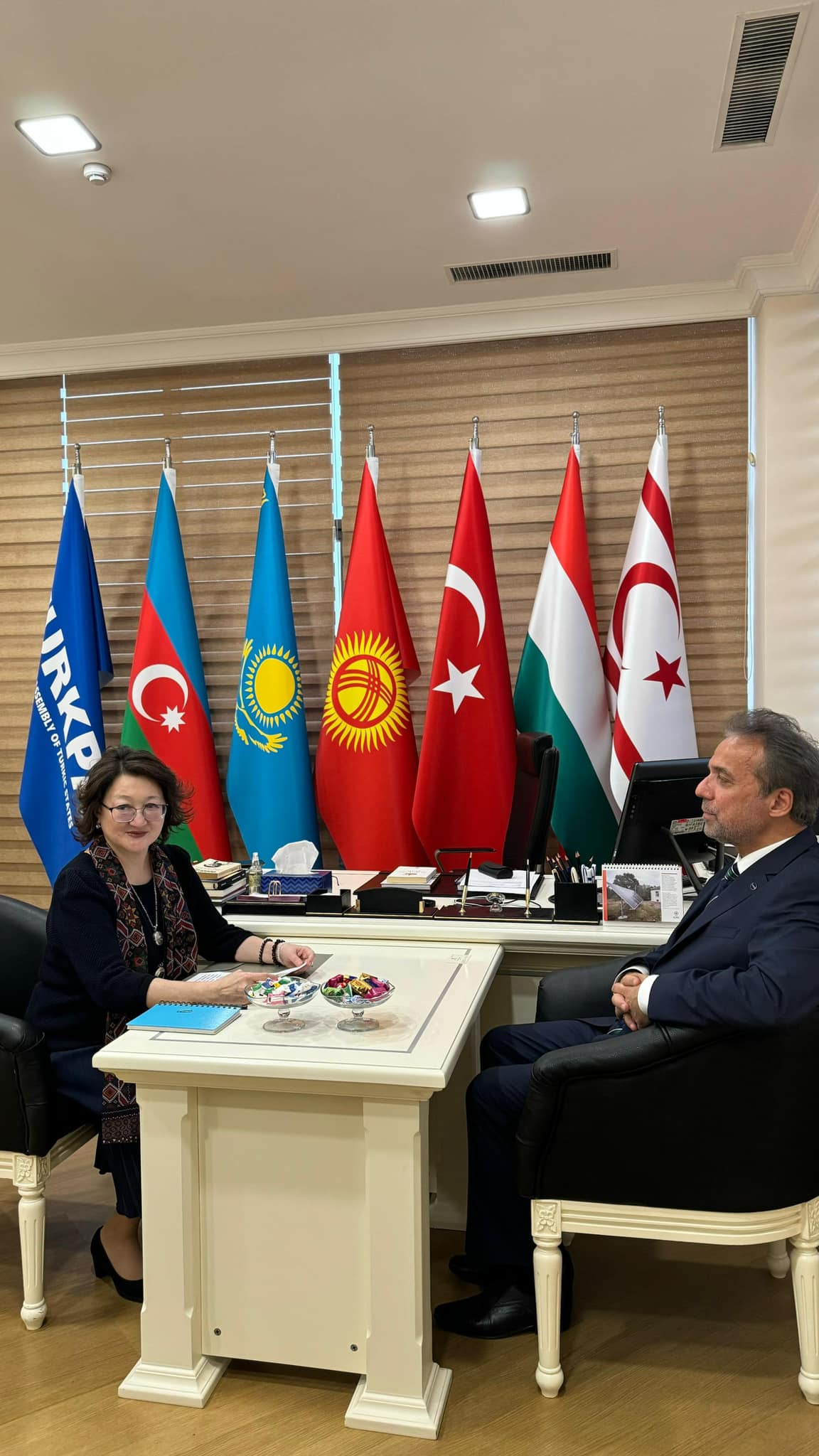 Türk Dövlətləri Parlament Assambleyasının (TÜRKPA) mərkəzi qərargahında Türk Mədəniyyəti və İrsi Fondunun prezidenti Aktotı Raimkulova TÜRKPA-nın Baş katibi Mehmet Süreyya Er ilə görüşüb.