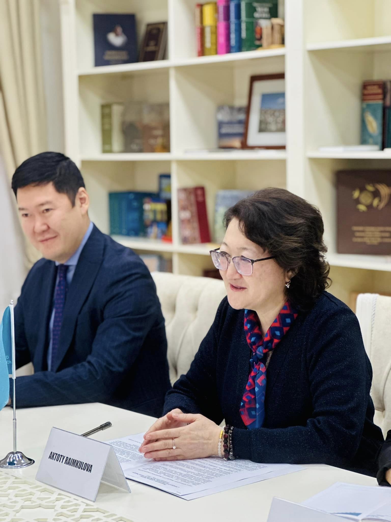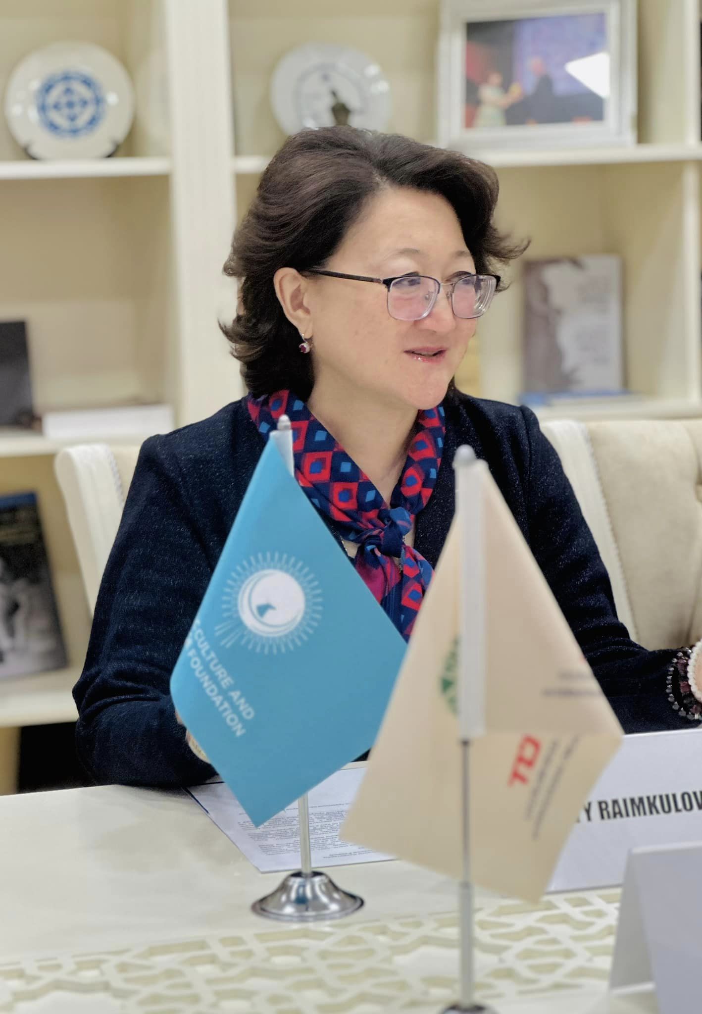 Aktotı Raimkulova qonaqları salamlayaraq, TÜRKSOY-u 30 illiyi, eləcə də Türkiyə Cümhuriyyətini 100 illiyi münasibətilə təbrik edib.