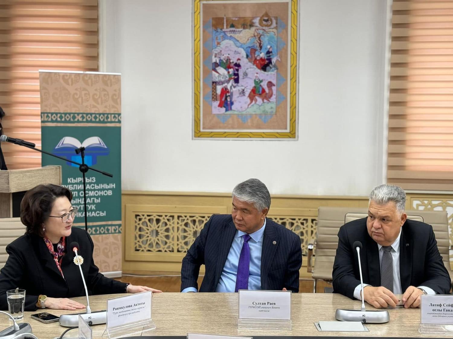 Qırğızıstanda Alıkul Osmonov adına Milli Kitabxanada görkəmli qırğız şairi Alıkul Osmonovun Türk Mədəniyyəti və İrsi Fondu tərəfindən Qırğız və Azərbaycan dillərində nəşr olunan "Zamandan zamana" kitabının təqdimatı keçirilib.