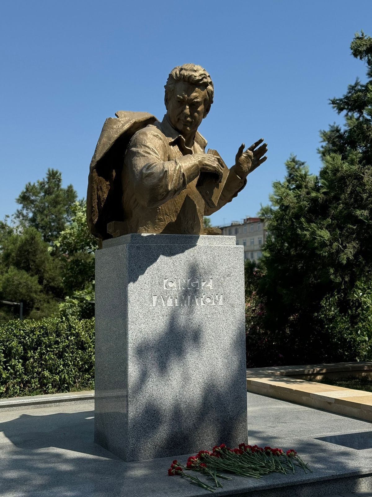 Türk Mədəniyyəti və İrsi Fondunun prezidenti və Fondun kollektivi böyük qırğız və ümumtürk yazıçısı Çingiz Aytmatovun Bakı şəhərində ucaldılmış abidəsi önünə gül dəstələri düzərək xatirəsini ehtiramla yad ediblər.