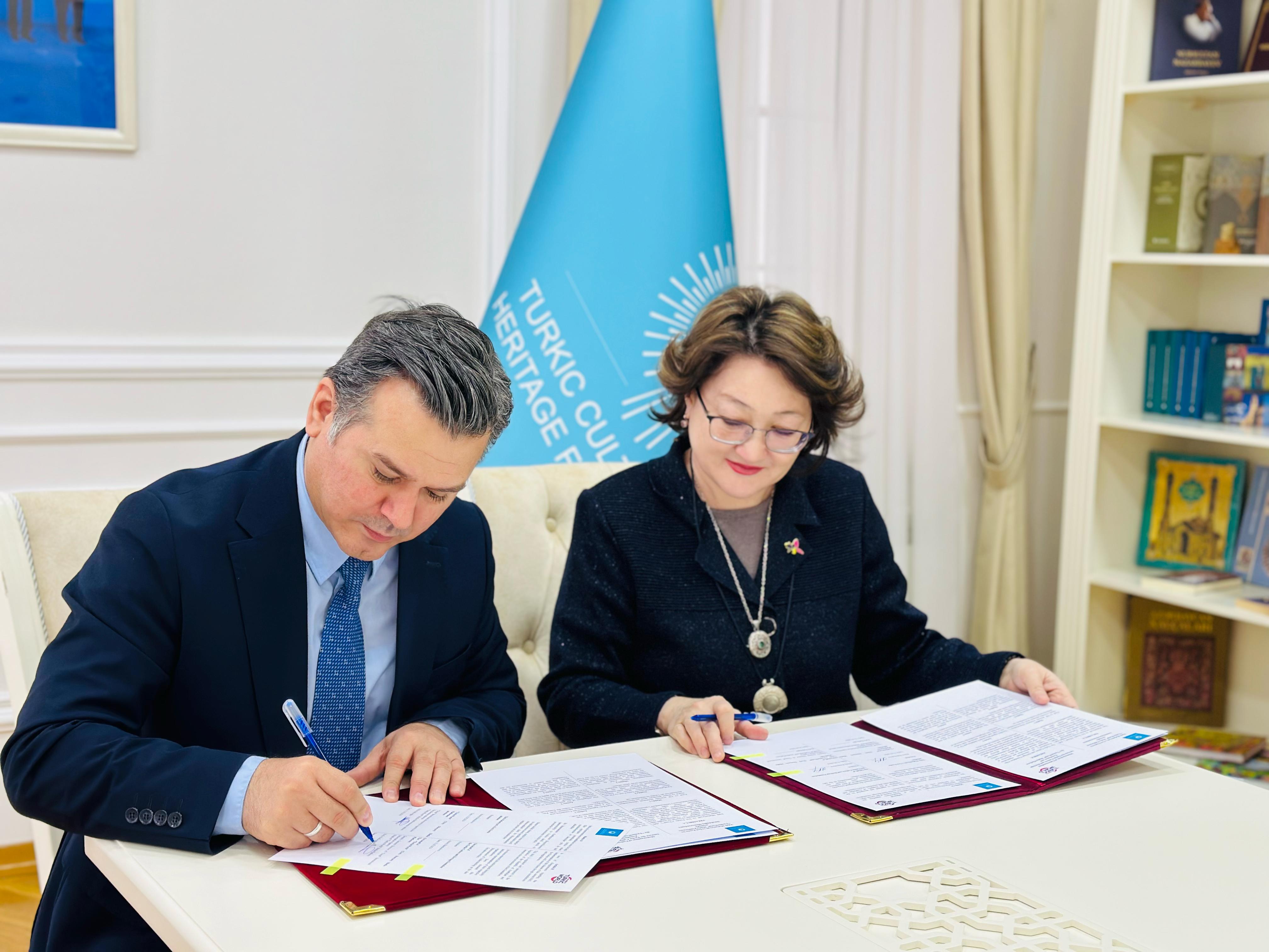 Türk Mədəniyyəti və İrsi Fondu ilə "Türk Dünyası" media platforması arasında ortaq tarixi köklərə sahib Türk xalqlarının mədəni irsinin qorunması, beynəlxalq miqyasda təbliği yönündə Fondun fəaliyyətinin tanıdılması və işıqlandırılması məqsədilə Anlaşma Memorandumu imzalanıb. Sənədi Türk Mədəniyyəti və İrsi Fondunun prezidenti Aktotı Raimkulova və “Türk Dünyası” media platformasının rəhbəri, Trend beynəlxalq informasiya agentliyinin direktor müavini Rufiz Hafizoğlu imzalayıb.