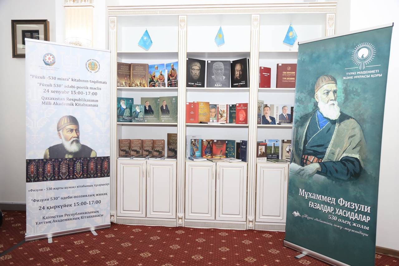 Türk Mədəniyyəti və İrsi Fondu tərəfindən Astanada Məhəmməd Füzulinin 530 illik yubileyi münasibətilə qazax dilində nəşr olunmuş “Füzuli – 530 misra” kitabının təqdimatı keçirilib