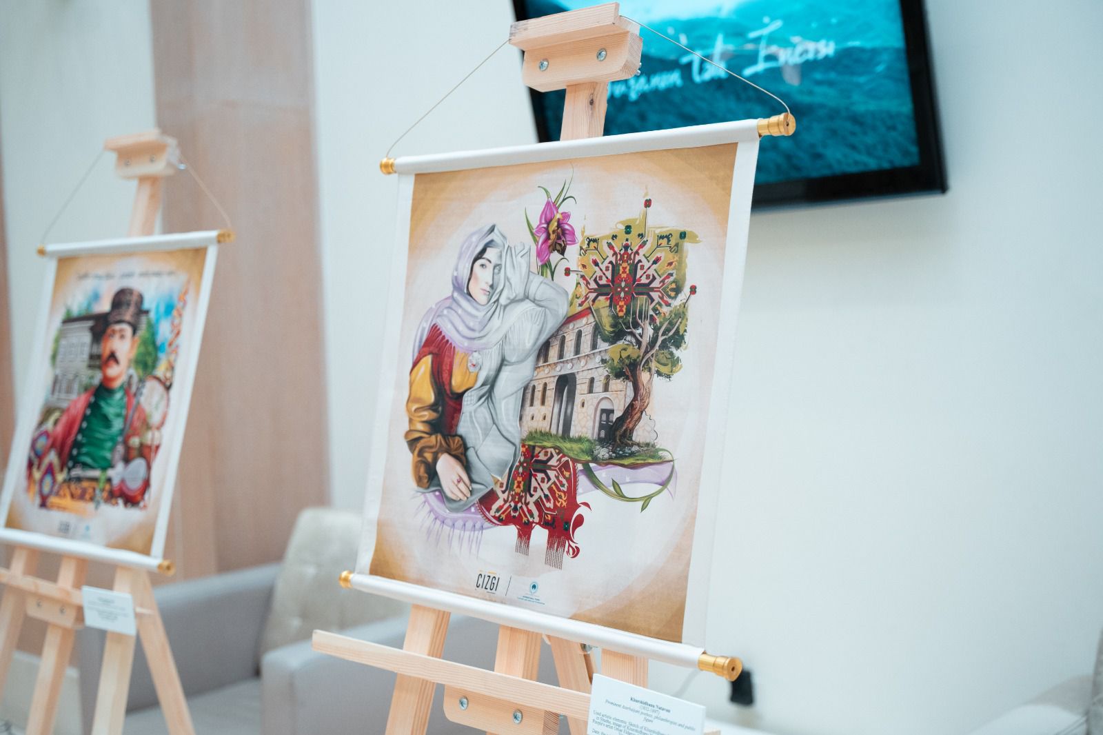 Azərbaycan Milli Geyim Mərkəzinin rəhbəri, sənətşünaslıq üzrə fəlsəfə doktoru, “Cizgi” brendininyaradıcısı, dizayner Gülnarə Xəlilovanın hazırladığı, üzərində Qarabağ bölgəsindən olan görkəmli şəxsiyyətlərin portretlərinin işləndiyi ipək yaylıqlardan ibarət sərgi tamaşaçılar tərəfindənmaraqla qarşılanıb.