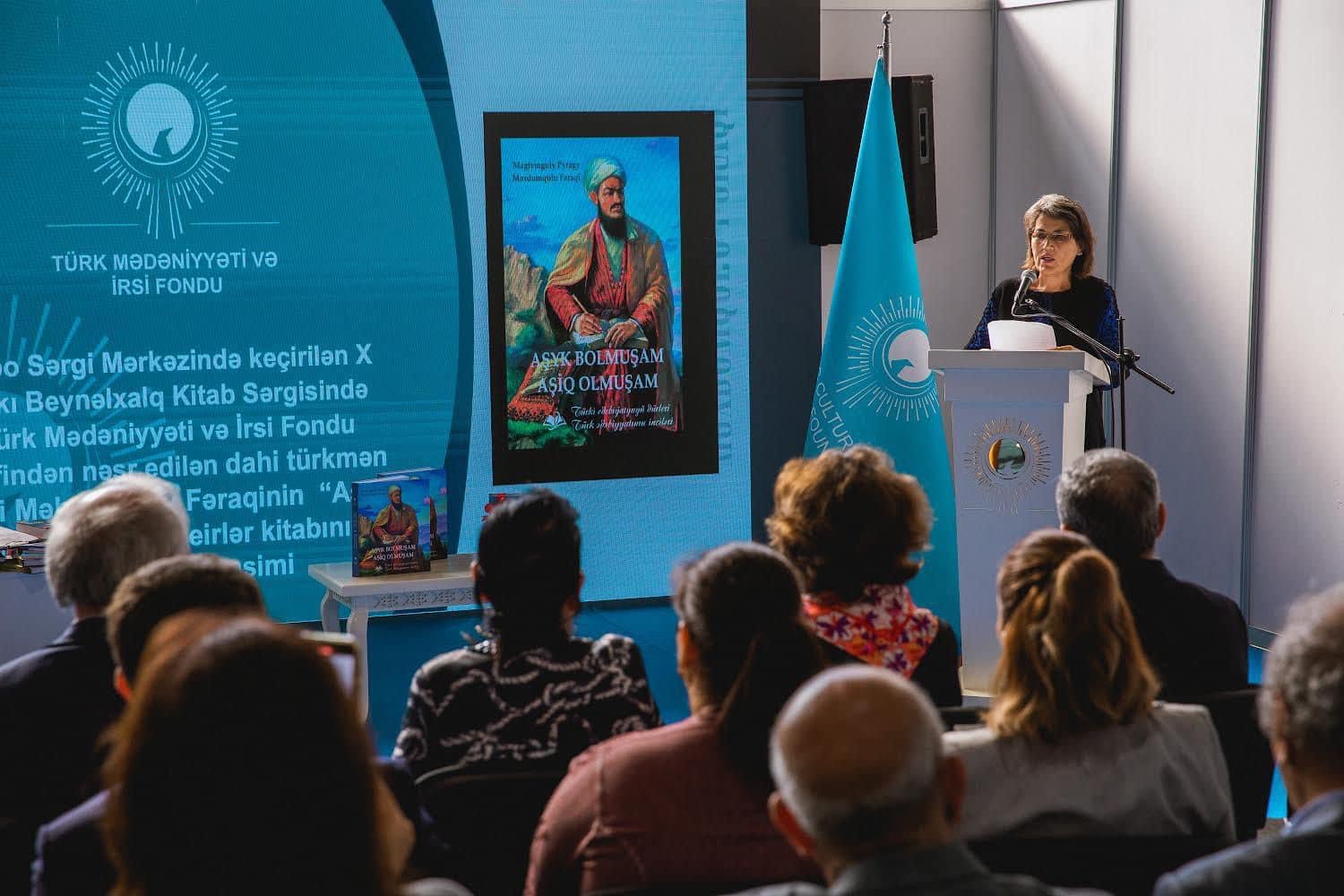 X Bakı Beynəlxalq Kitab Sərgisi çərçivəsində Türk Mədəniyyəti və İrsi Fondu tərəfindən Azərbaycan və türkmən dillərində nəşr olunan böyük türkmən şairi Məhdimqulu Fəraqinin “Aşiq olmuşam” şeirlər kitabının təqdimat mərasimi keçirilib.