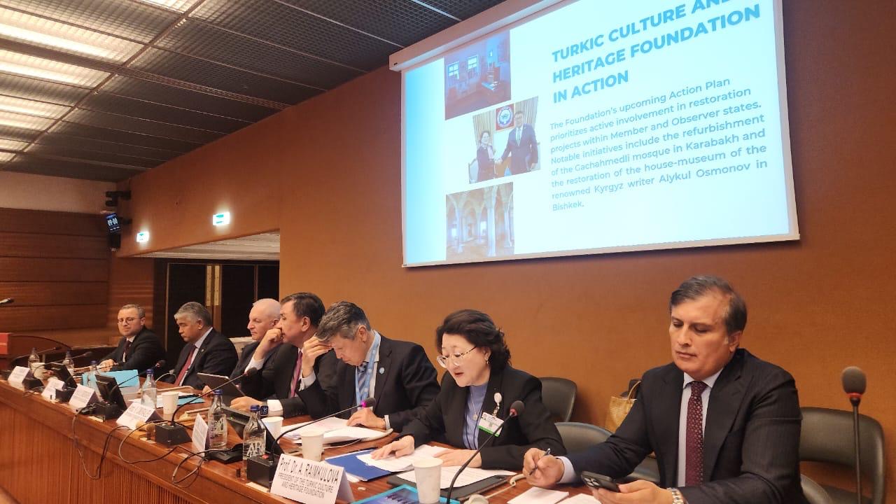 Türk Mədəniyyəti və İrsi Fondunun prezidenti Aktotı Raimkulova Cenevrədə Türk Əməkdaşlıq Təşkilatlarının birgə konfransında Türk irsinin qorunmasının vacibliyinə diqqət çəkib
