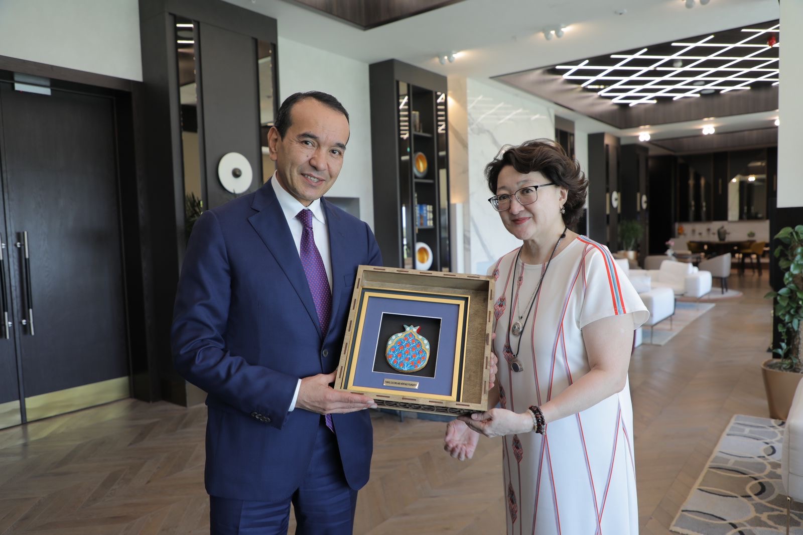 Türk Mədəniyyəti və İrsi Fondunun prezidenti Aktotı Raimkulova Özbəkistan Respublikasına rəsmi səfəri çərçivəsində Özbəkistanın mədəniyyət naziri Ozodbek Nazarbekov ilə görüşüb.